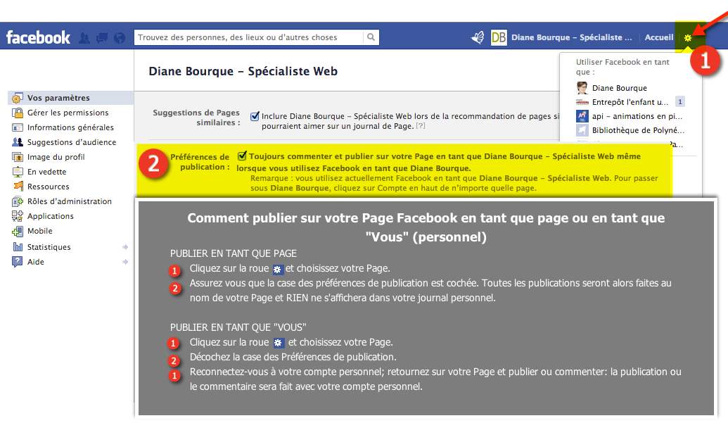 You cannot post and comment as a Page on a personal profile. Several people have asked me if it is possible and in my opinion, this option will never be available in Facebook. Par exemple, a “Page” wanted to thank a follower for a comment made on the Page and was attempting to post that acknowledgment directly in the follower's journal as Page. Not possible!