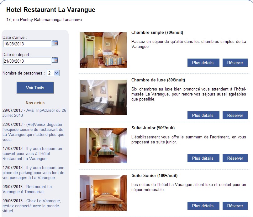 La nouveauté réside dans le fait que l’internaute reste sur les pages Facebook pour effectuer sa réservation, depuis la recherche par date jusqu’à la page de réservation.