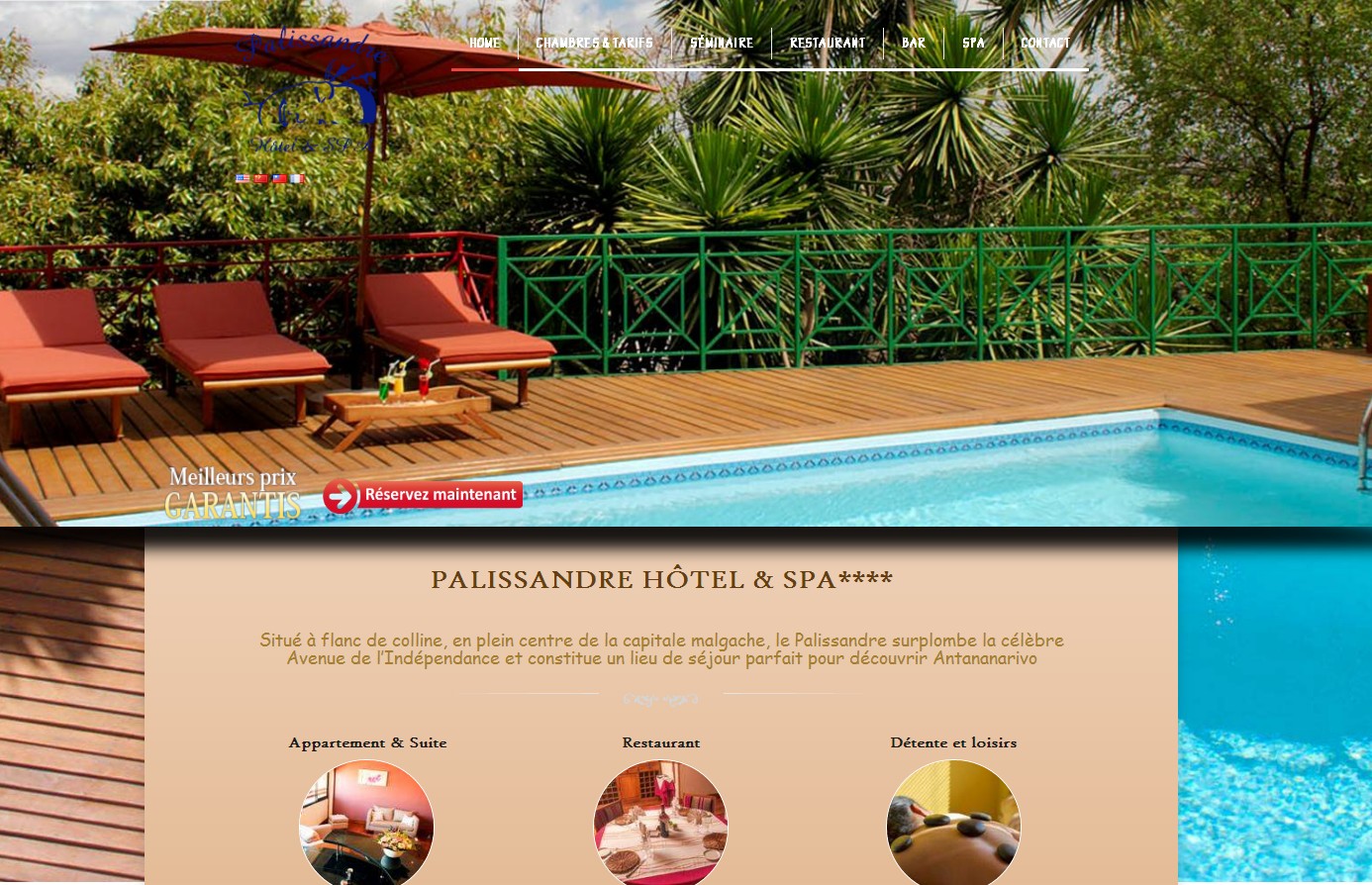 Hotel 4* located on the hillside, In the city center, Rosewood Hotel & SPA opens the doors to conviviality, hospitality and welcomes you in the pure Malagasy tradition. Ses 48 rooms have precious rosewood furniture and are equipped with television, mini bar, safe, hair dryer, Bathroom with bathtub. SPA – Heated outdoor swimming pool – Cardio space – Hammam will provide you with relaxation after a day of discovery or work From the terrace of its restaurant overlooking the city, you will enjoy a fine and creative cuisine.Room service. free internet access, WIFI in room.