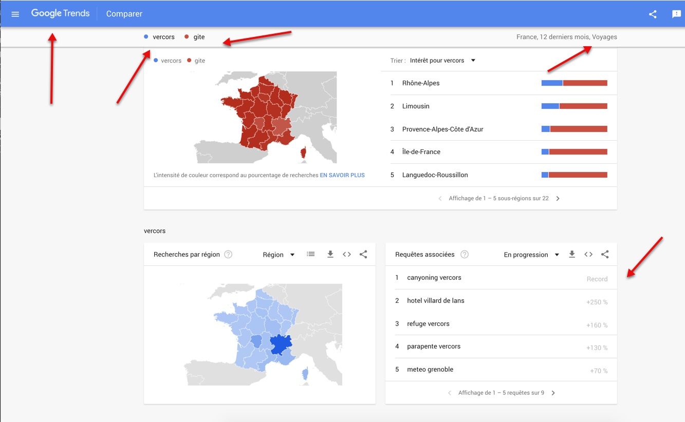 - -create content that makes sense and matches what Google users are looking for. You don't know if you're using the right terms ? So go to Google Trends, it's free ! Type the name of your destination, of your category (hotel, trips, guest House, etc …) and see what terms Google users associate with this search: